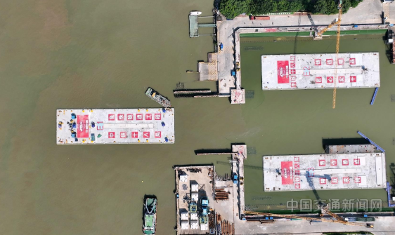 2025-09-29图为鱼珠隧道E1管节出坞现场。 9月16日,由中铁十八局承建的鱼珠隧道首节沉管——E1管节顺利...